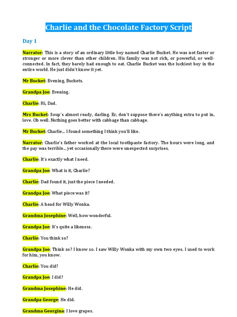 Charlie and the Chocolate Factory Play Script | Confectionery | Sugar ...