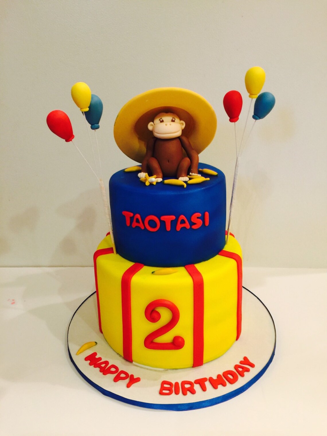 Curious George birthday cake with handmade fondant topper | Fondant ...